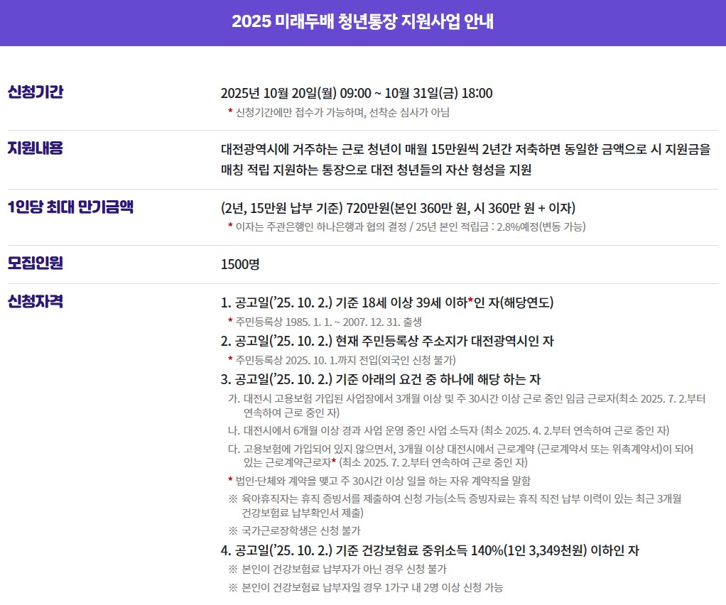 2.공고일(’25. 10. 2.) 현재 주민등록상 주소지가 대전광역시인 자* 주민등록상 2025. 10. 1.까지 전입(외국인 신청 불가)
