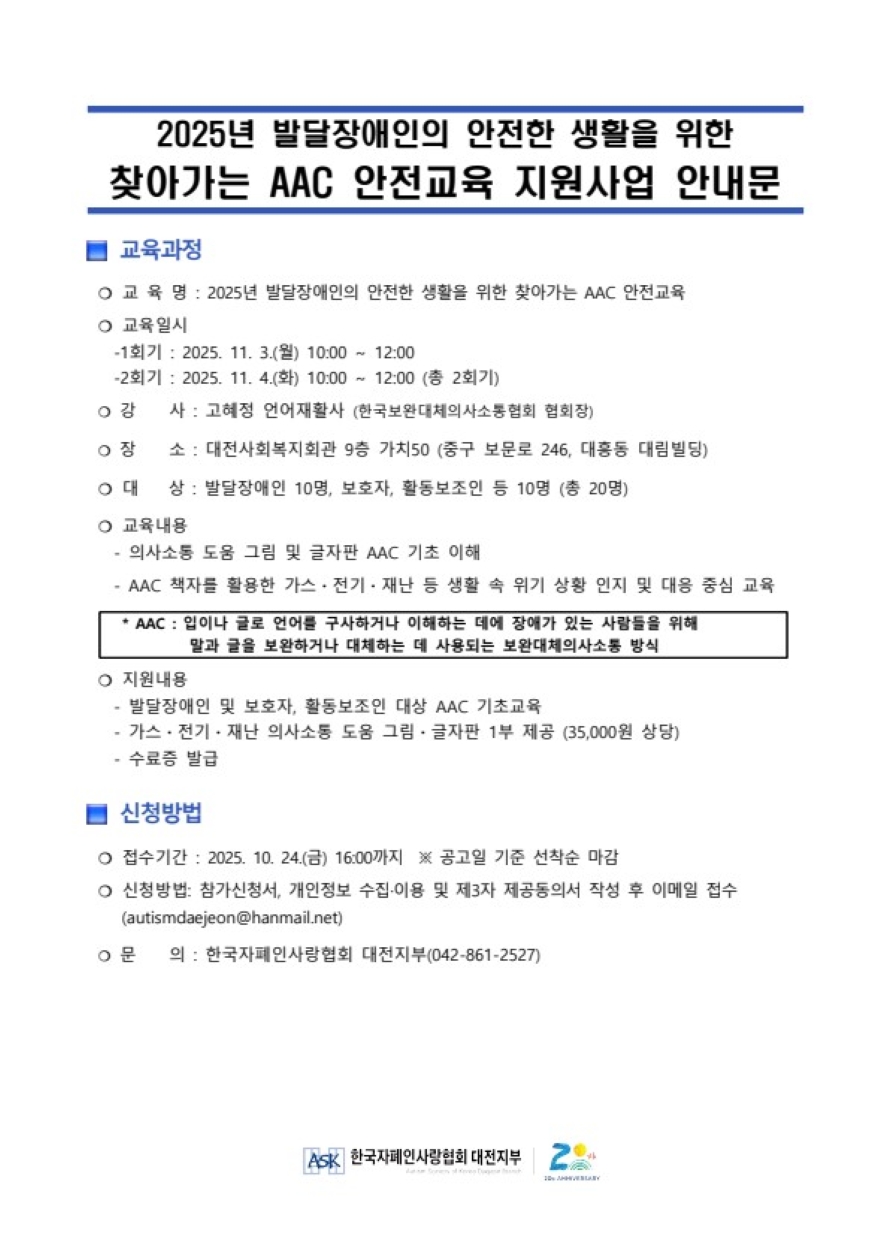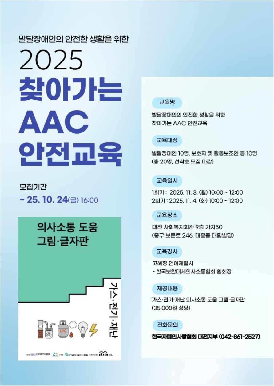 한국자폐인사랑협회 대전지부에서 발달장애인의 안전한 생활을 위한 AAC 안전교육 이해증진 및 역량강화를 위해