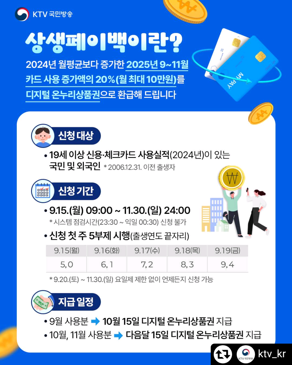 9월 15일부터 11월 30일까지 상생페이백 신청이 시작됩니다!