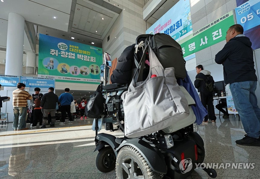 4일 오후 대전시 서구 둔산동 대전시청에서 열린 '2025 대전 장애인 취·창업박람회'에서 구직자들이 참가 기업을 확인하기 위해 이동하고 있다. 2025.11.4